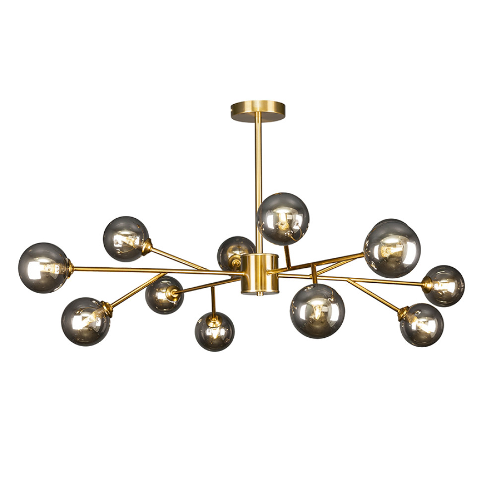 Стельова декоративна люстра молекули на 12 ламп зі скляними плафонами-кулями.