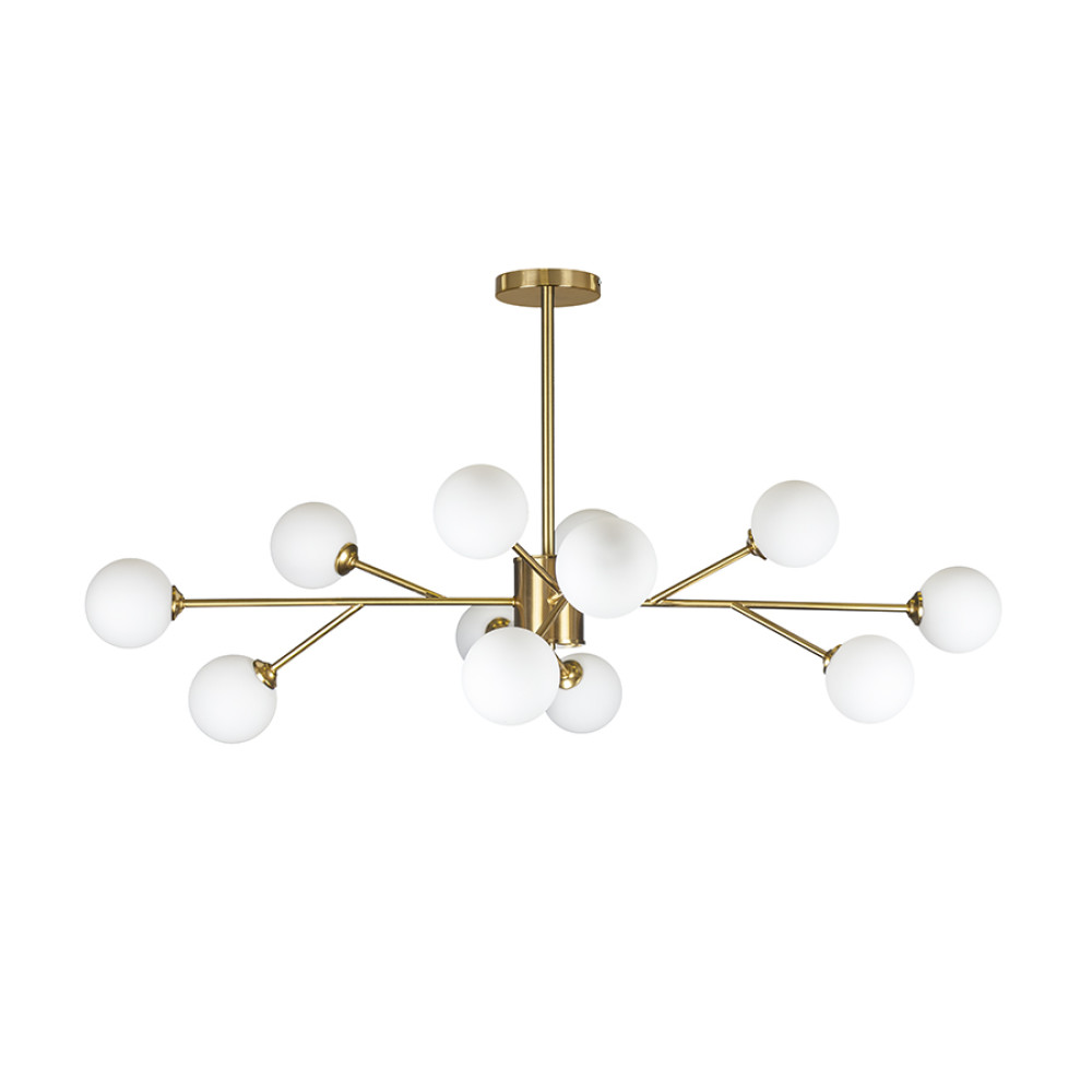 Декоративні стельова люстра молекули в сучасному стилі на 12 лампи з плафонами сферичної форми.