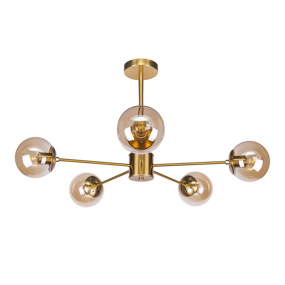 Декоративні стельова люстра молекули в сучасному стилі на п'ять ламп з сферичної форми плафони.
