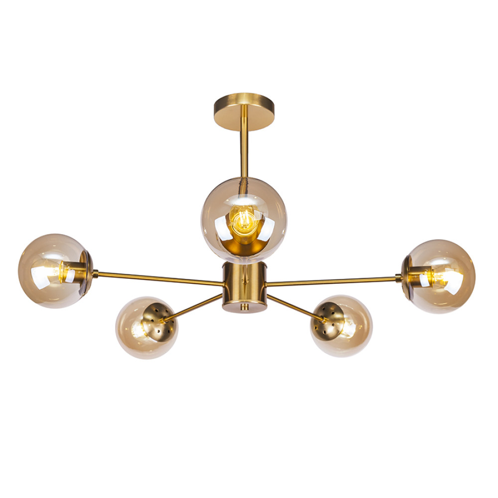Немає відгуків про товар Люстра стельова молекула Levistella 7529807-5 BRZ+BR бронза, плафон коричневий