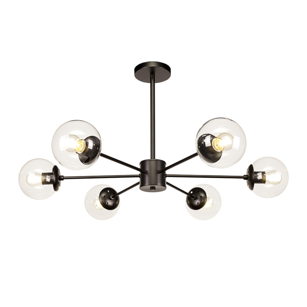 Немає відгуків про товар Люстра стельова молекула Levistella 7529807-6 BK+CL чорний, плафон прозорий