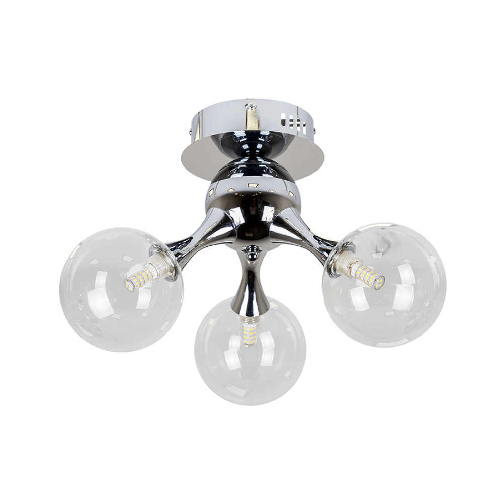 Стельова декоративна люстра молекули на 3 лампи зі скляними плафонами-кулями.