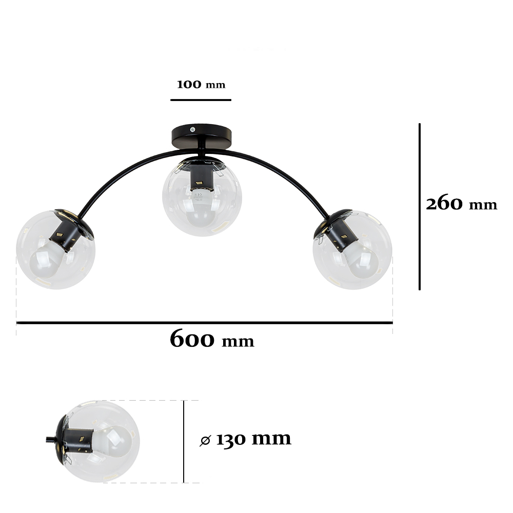 Люстра стельова молекула Levistella 7529907-3 BK+CL чорна, плафон прозорий