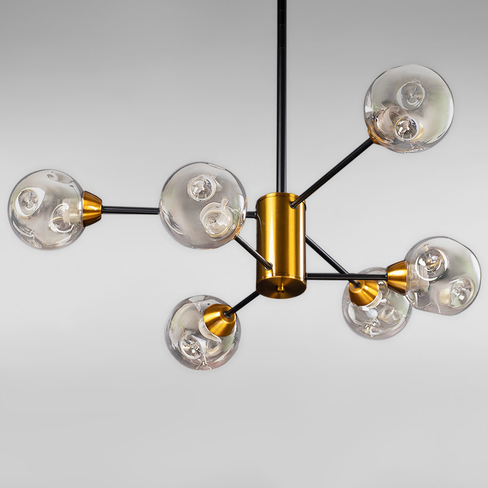 Декоративна стельова люстра-молекула на шість ламп у стилі Лофт зі скляними круглими плафонами.