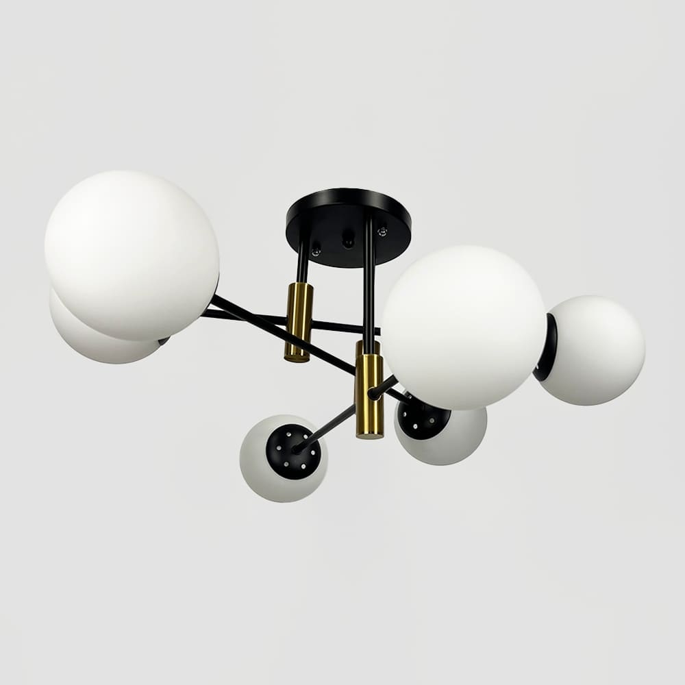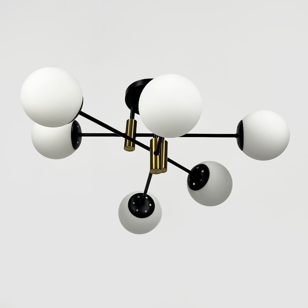 Люстра стельова молекула Light House LNF-17540/6 CP+BK+WT чорна з латунною фурнітурою, з білим плафоном