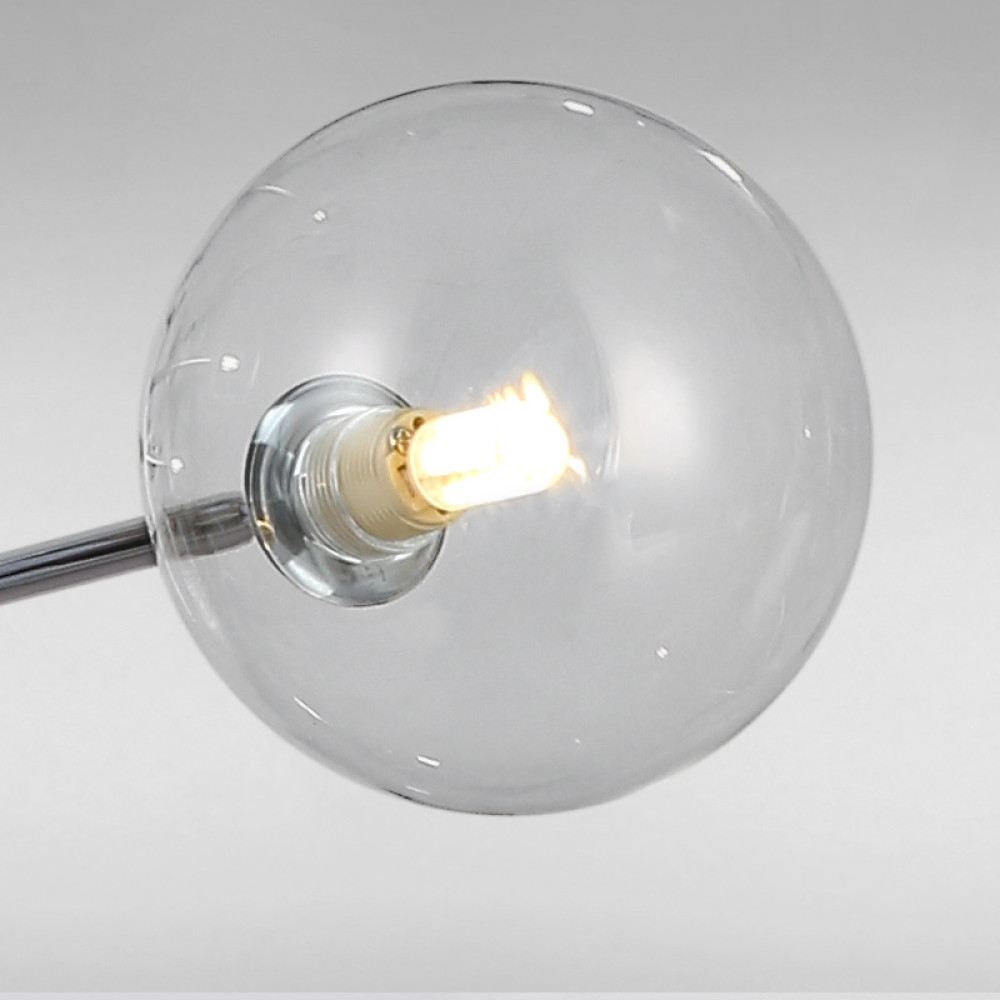 Стельова люстра-молекула на вісім ламп з плафонами у формі кулі.