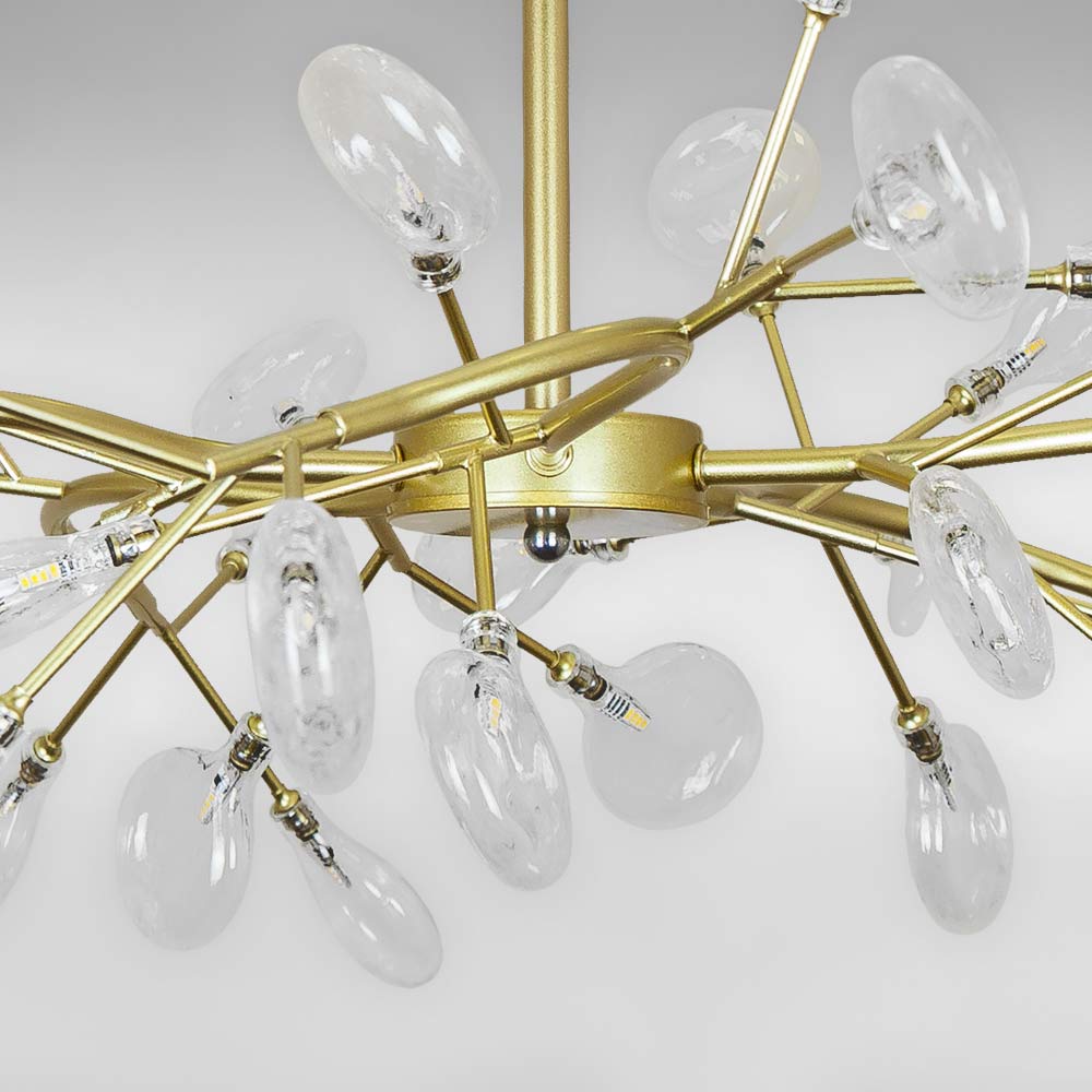 Стельова декоративна люстра молекули у футуристичний стиль на 45 ламп G4 зі скляними плафонами у вигляді крапель.