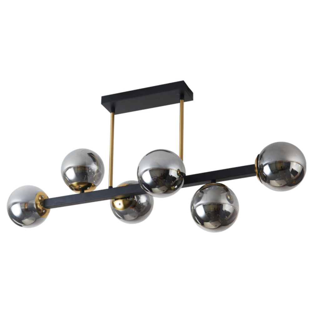 Люстра стельова молекула Light House SRS-19386/6A BK+GD колір чорний + золото, плафон димчастий
