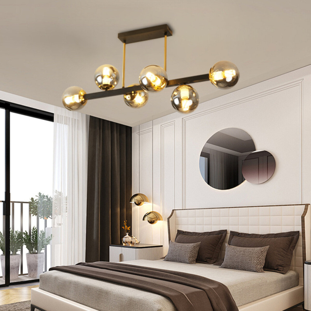 Шість круглих плафонів діаметром 130 мм у димчастому кольорі, люстра пропонує не тільки естетичний вигляд, а й високий рівень функціональності. Металевий каркас надає їй стійкості та надійності, гарантуючи тривалу службу.