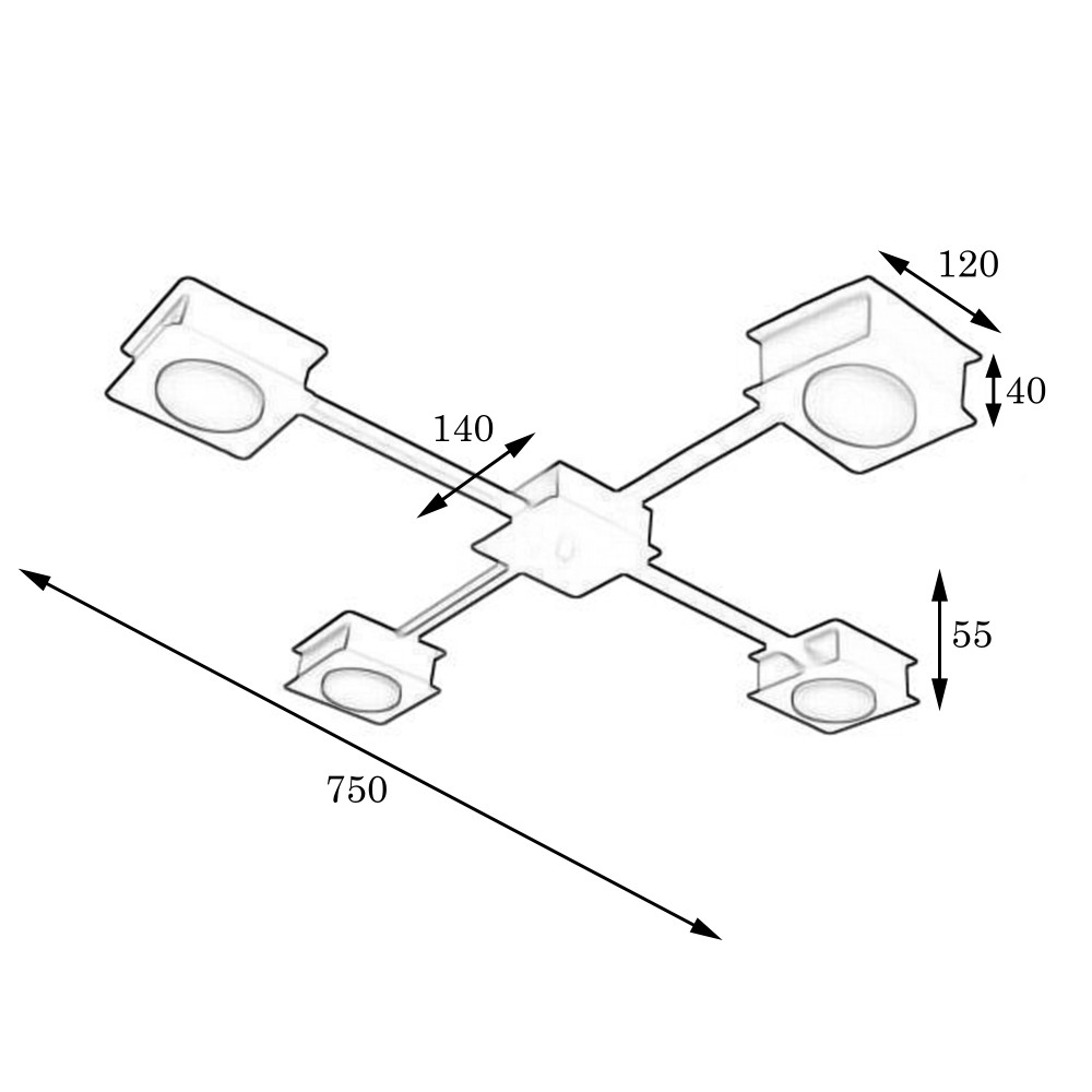 Тип цоколя: GX53Кількість джерел світла: 4 (лампочки в комплект не входять)