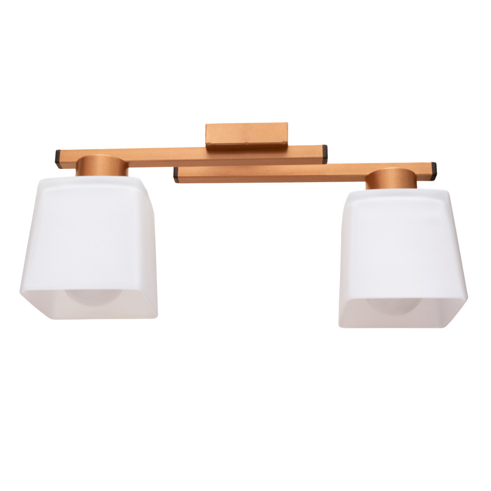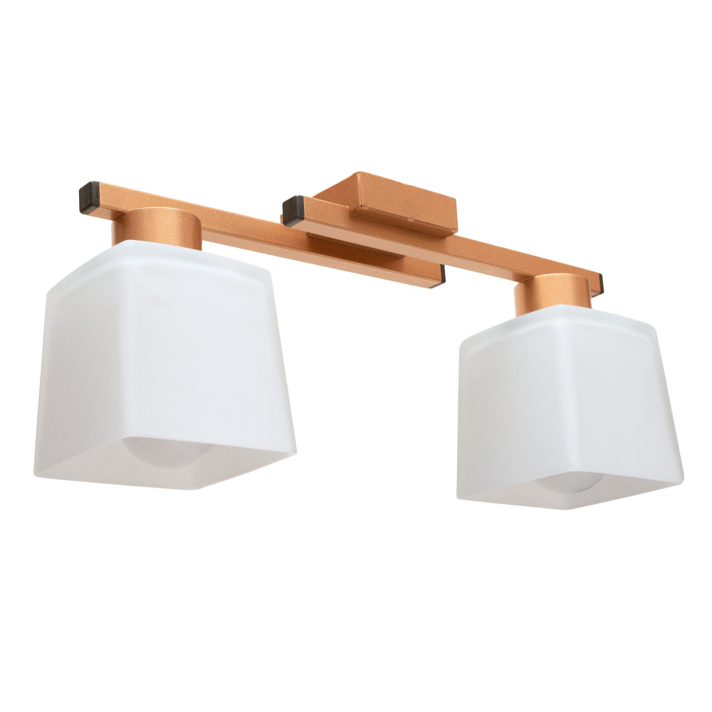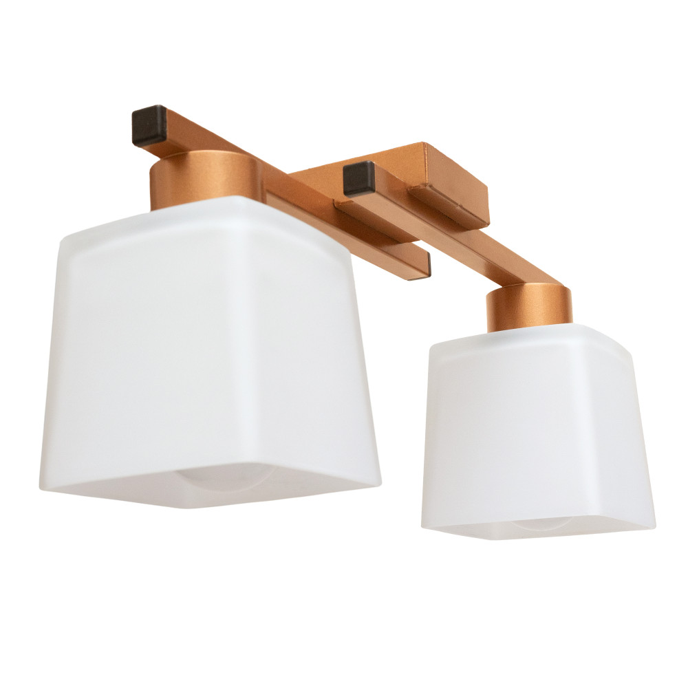 Стельова люстра на два скляні плафони квадратної форми, білого матового кольору та металевим корпусом у кольорі античної міді – це практичне рішення для повсякденного освітлення з акцентом на сучасний зовнішній вигляд. Найкраще використовувати у приміщенні загальною площею 6 м². Модель поєднує компактні розміри і достатню потужність освітлення, що робить її зручною для використання в житлових приміщеннях різного призначення.