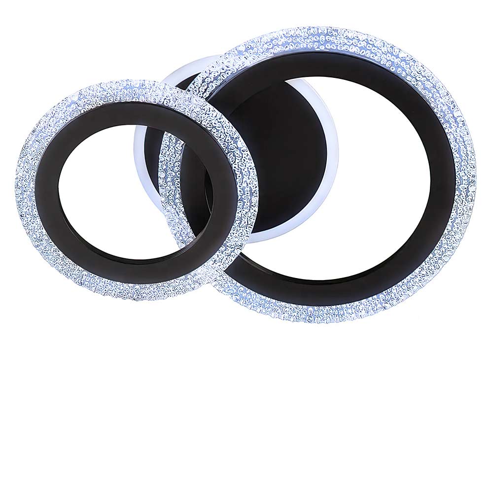 Стельова світлодіодна люстра в сучасному стилі, на два джерела світла у вигляді LED кілець з підсвічуванням корпусу, без пульта керування.