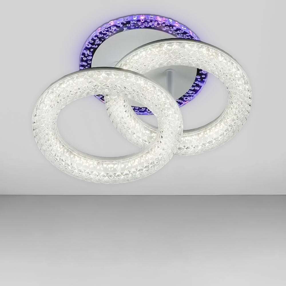 Стельова світлодіодна люстра в сучасному стилі, на два джерела світла у вигляді LED кілець з підсвічуванням корпусу, без пульта керування.