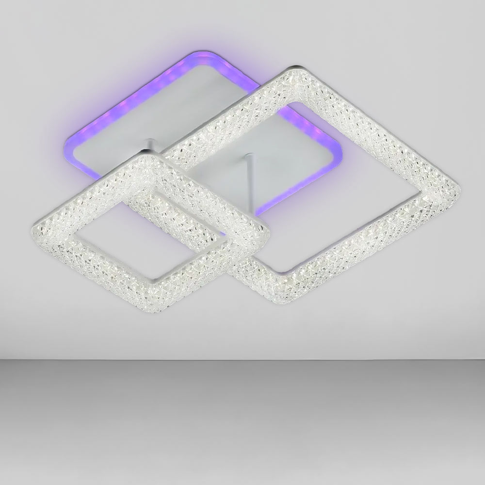 Стельова світлодіодна люстра в сучасному стилі, на два джерела світла у вигляді LED квадратів з підсвічуванням корпусу та пультом керування.