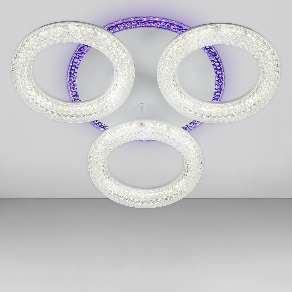 Стельова світлодіодна люстра в сучасному стилі, на три джерела світла у вигляді LED кілець з підсвічуванням корпусу, пультом керування та регулюванням температури свічення.