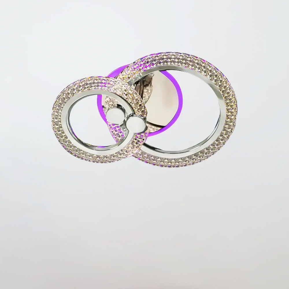 Стельова світлодіодна люстра в сучасному стилі, на два джерела світла у вигляді LED кілець з підсвічуванням корпусу та регулювання температури свічення, без пульта.