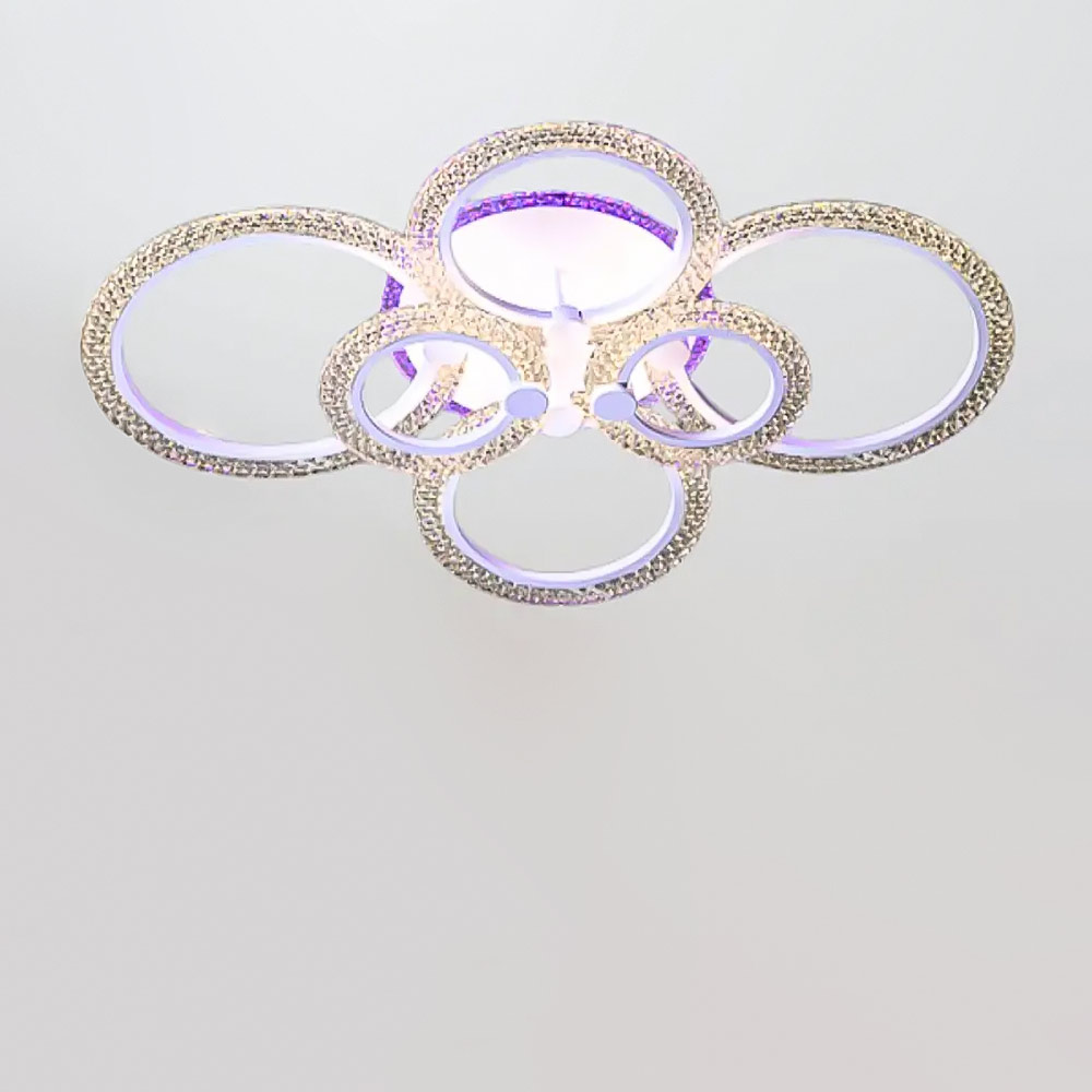Стельова світлодіодна люстра в сучасному стилі, на шість джерел світла у вигляді LED кілець з підсвічуванням корпусу, регулюванням температури свічення та пультом управління.