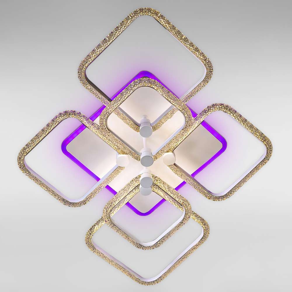 Стельова світлодіодна люстра в сучасному стилі, на шість джерел світла у вигляді LED квадратів з підсвічуванням корпусу та регулюванням температури свічення, з пультом керування.