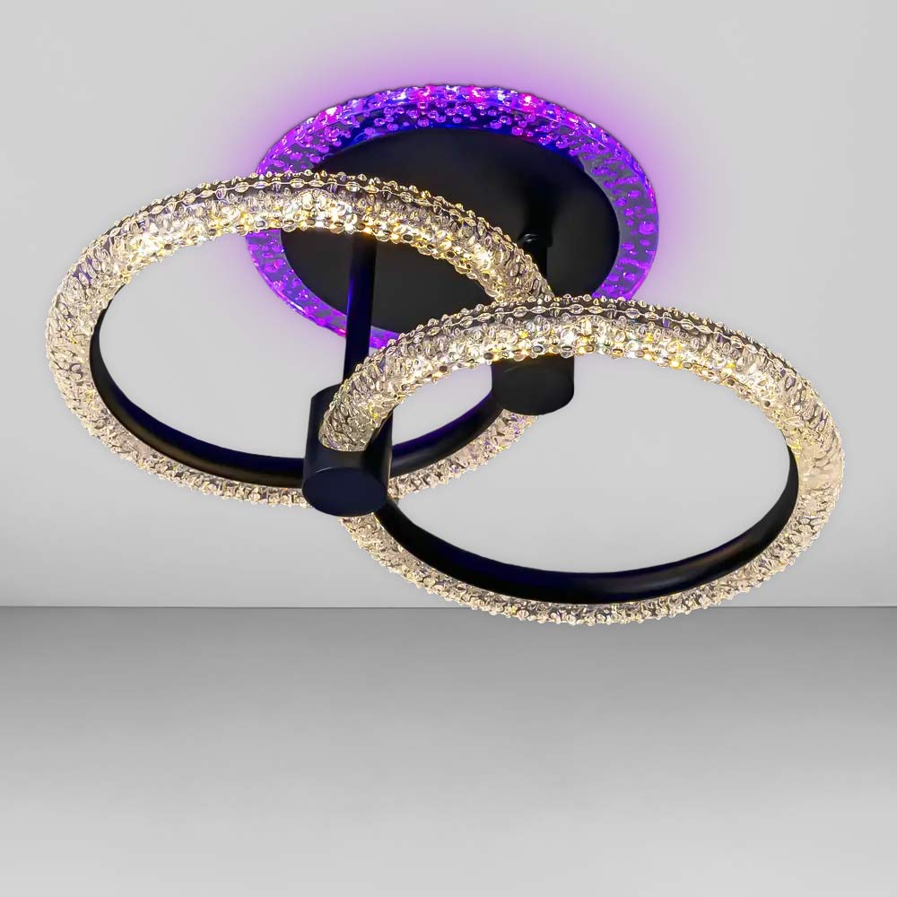 Стельова світлодіодна люстра в сучасному стилі, на два джерела світла у вигляді LED кілець з підсвічуванням корпусу та регулювання температури свічення, без пульта.