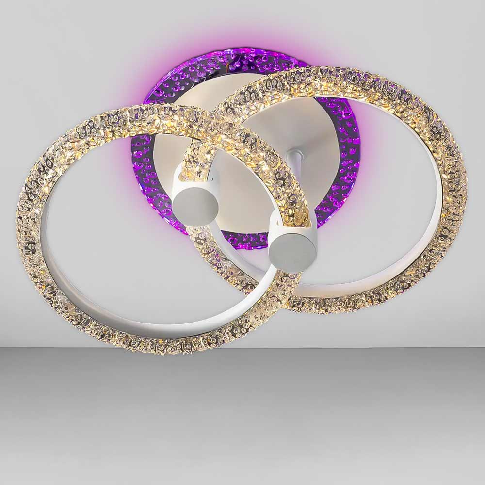 Стельова світлодіодна люстра в сучасному стилі, на два джерела світла у вигляді LED кілець з підсвічуванням корпусу та регулювання температури свічення, без пульта.
