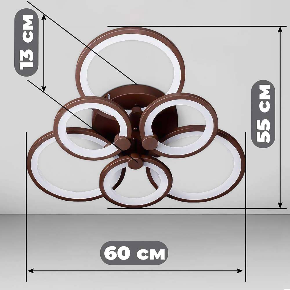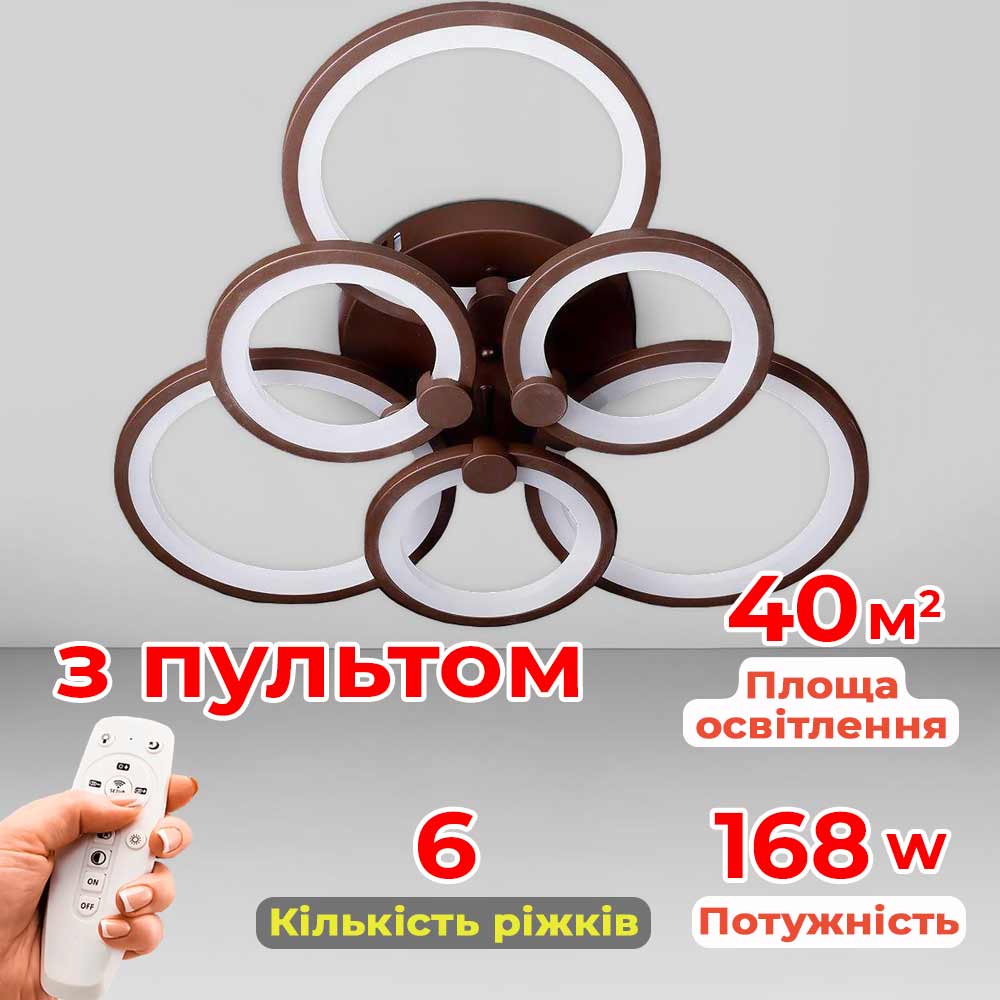 Люстра стельова світлодіодна LED Light House SL-18184/3+3B COFFE 168W DIMMER 3000-6000 H130*L600*W550, колір кавовий