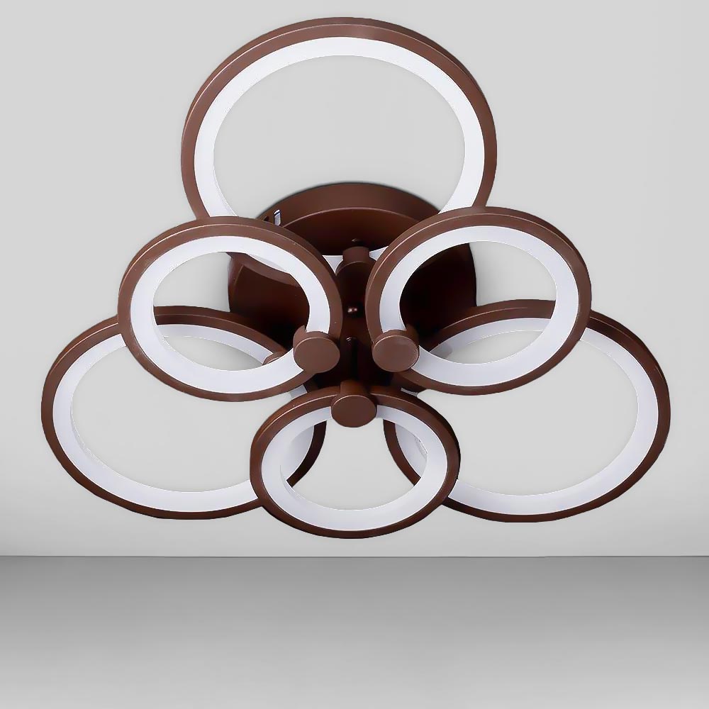 Стельова світлодіодна люстра в сучасному стилі, на шість джерел світла у вигляді LED кілець з диммером.