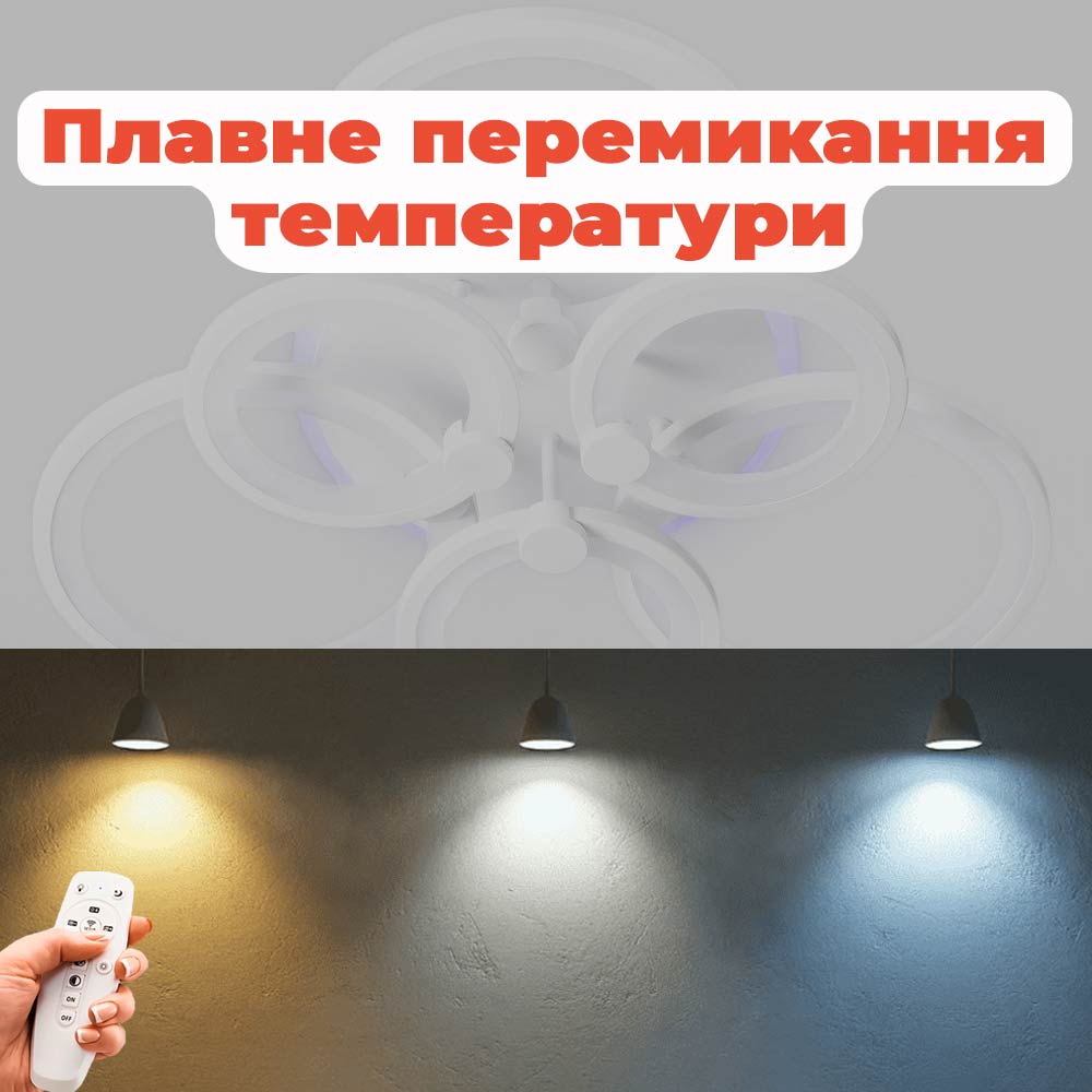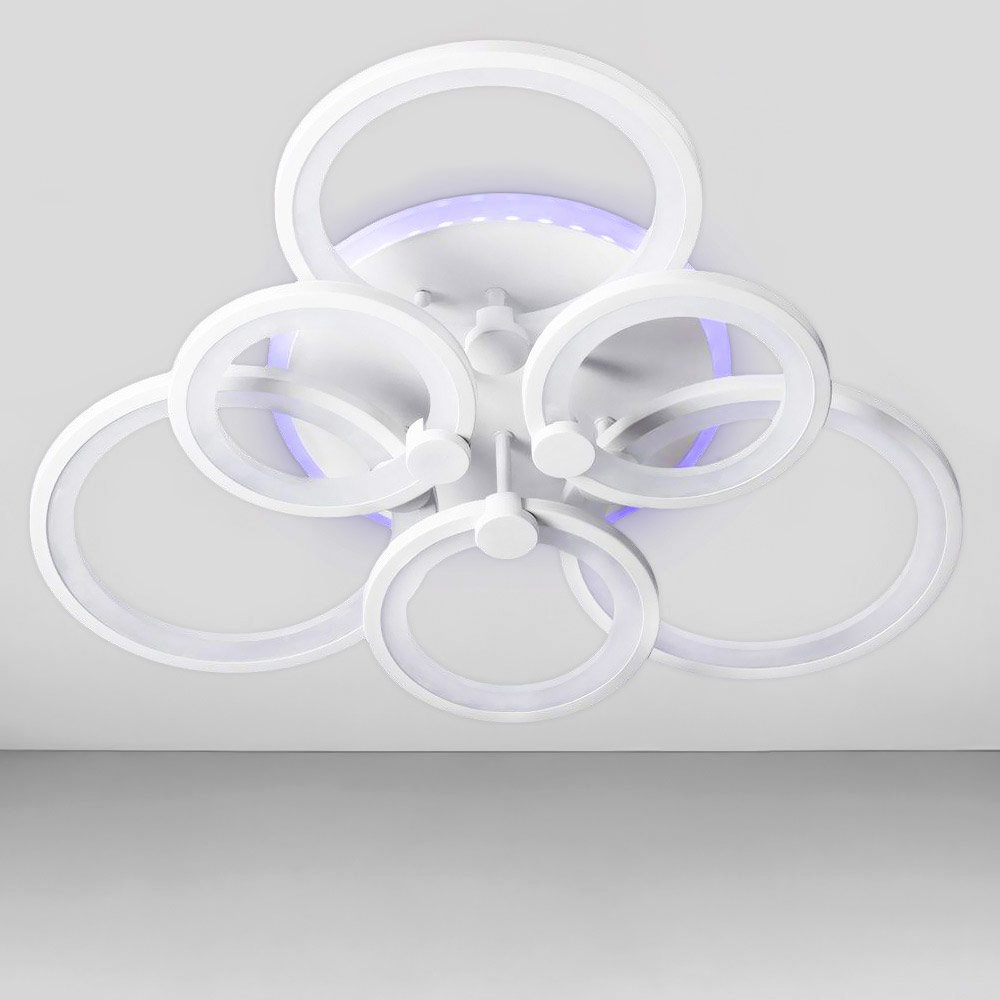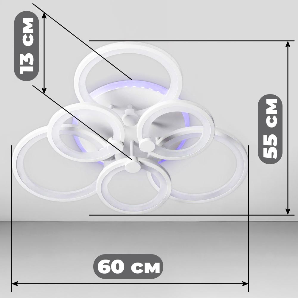 Стельова світлодіодна люстра у сучасному стилі, на шість джерел світла у вигляді LED кілець з диммером та RGB з підсвічуванням корпусу.