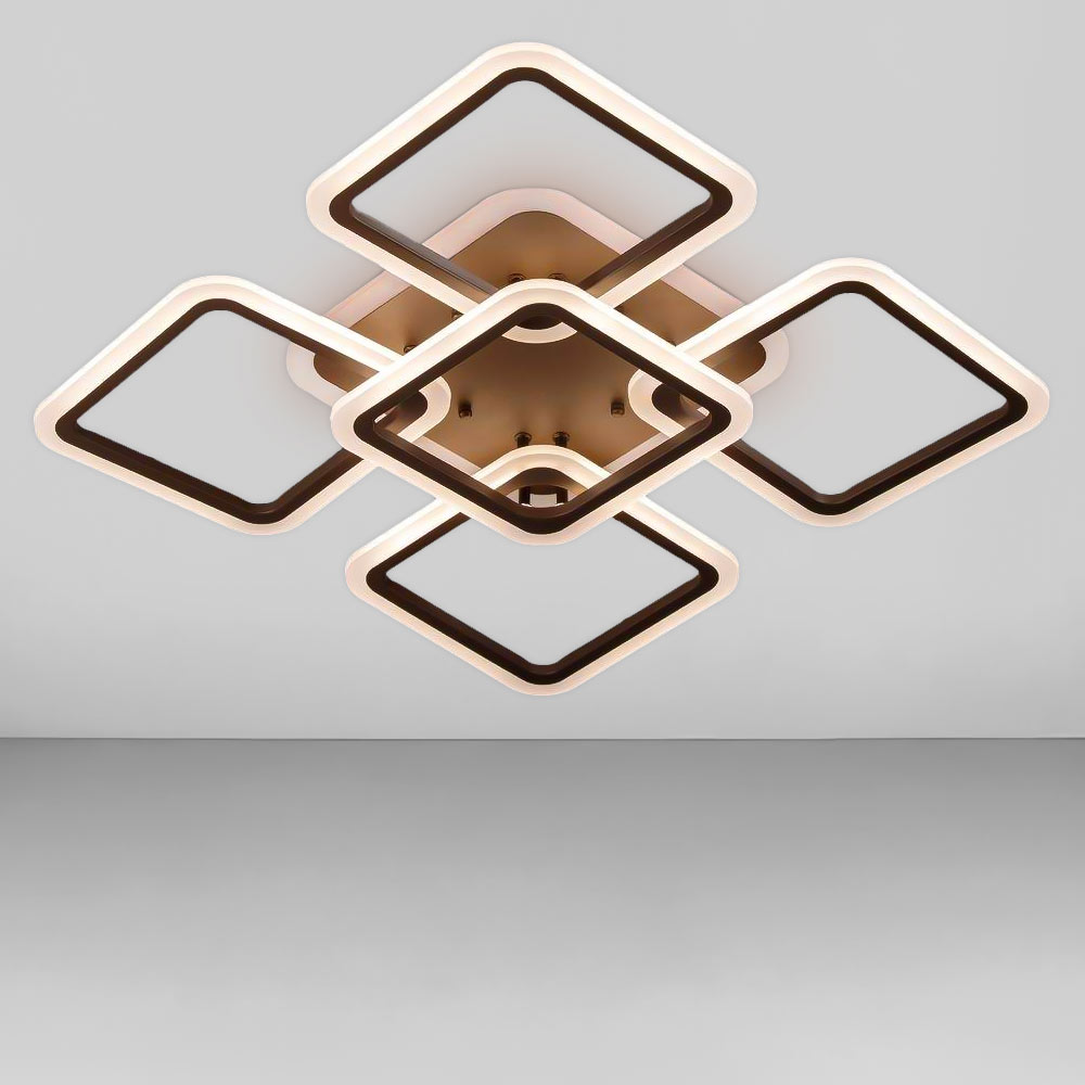 Стельова світлодіодна люстра у сучасному стилі, на п'ять джерел світла у вигляді LED квадратів з диммером та RGB з підсвічуванням корпусу.