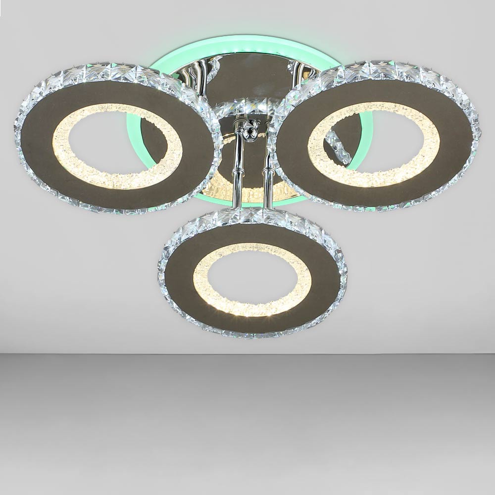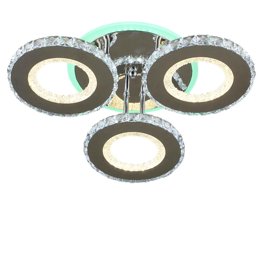 Стельова світлодіодна люстра в сучасному стилі, на три джерела світла у вигляді LED кілець з RGB підсвічуванням корпусу та пультом управління.