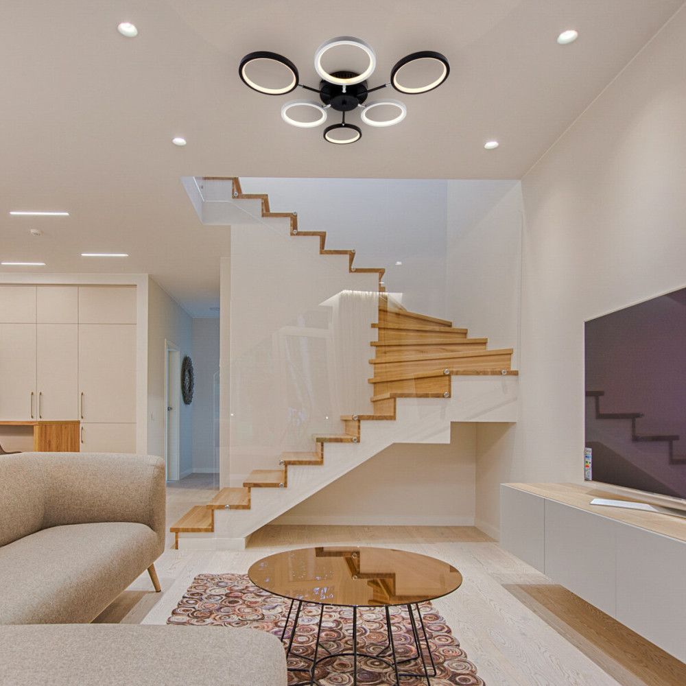 Стельова світлодіодна люстра у сучасному стилі, на шість джерел світла у вигляді LED колец. Найкраще використовувати у приміщенні із загальною площею 15 м. кв.