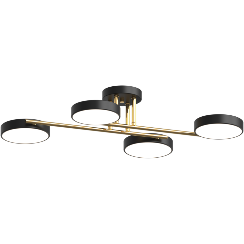 Каркас виготовлений із міцного металу чорного кольору, забезпечуючи надійність та довговічність. Чотири плафони з акрилу круглої форми, а також чорного кольору рівномірно розподілять світло в приміщенні, створюючи приємну атмосферу.