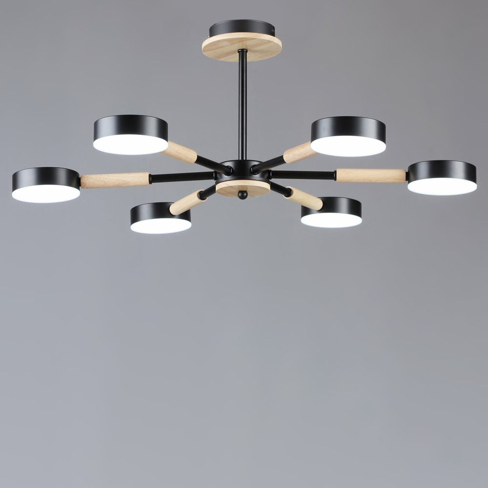 Люстра стельова світлодіодна LED Light House SRS-19797/6 BK+WOOD, колір чорний + бежевий