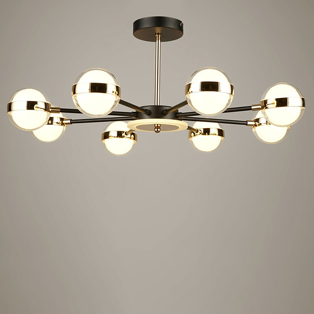 Стельова світлодіодна люстра-молекула в сучасному стилі, на вісім джерел світла у вигляді куль із регулюванням температури свічення, без пульта керування.