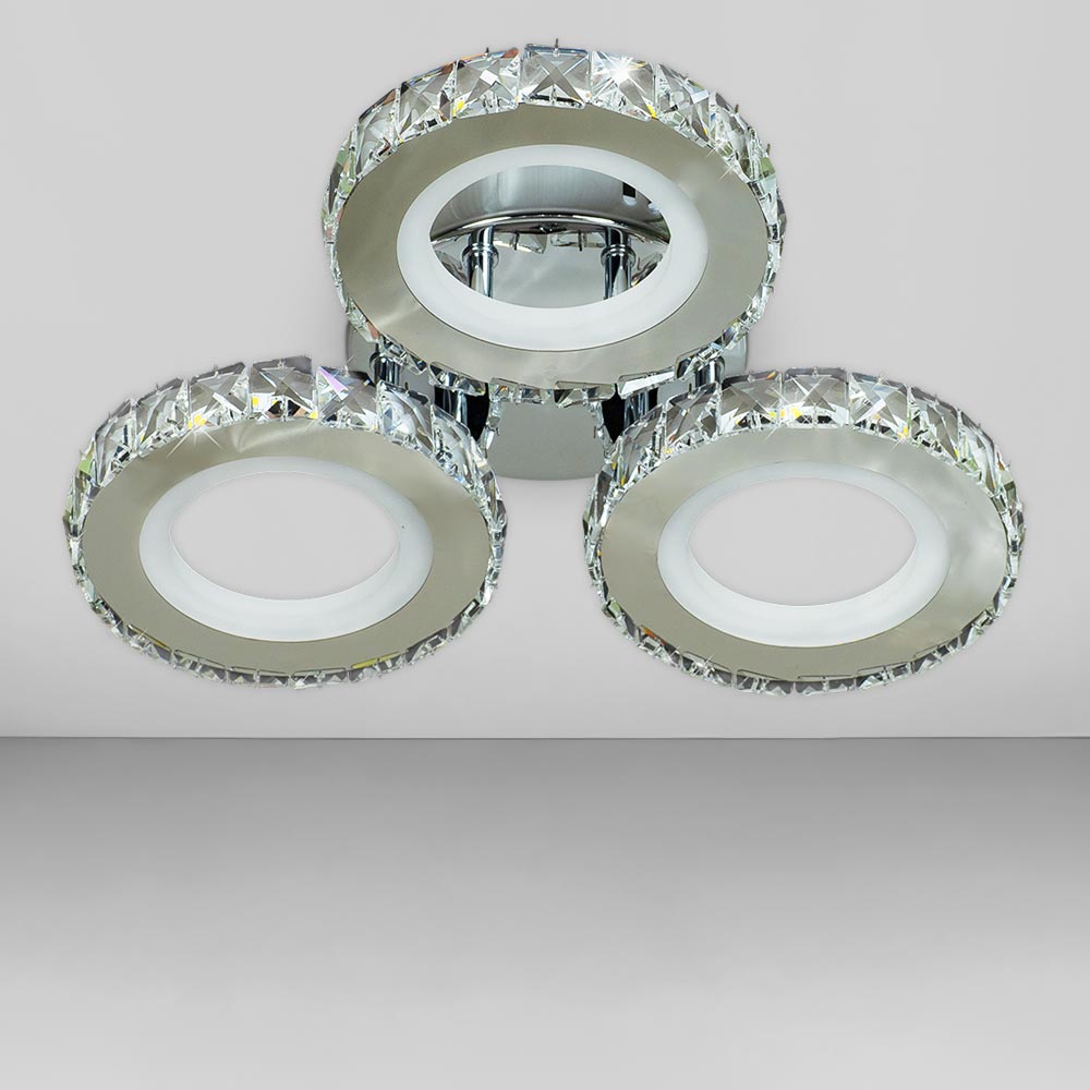 Стельова світлодіодна люстра у сучасному стилі, на три джерела світла у вигляді LED кілець.