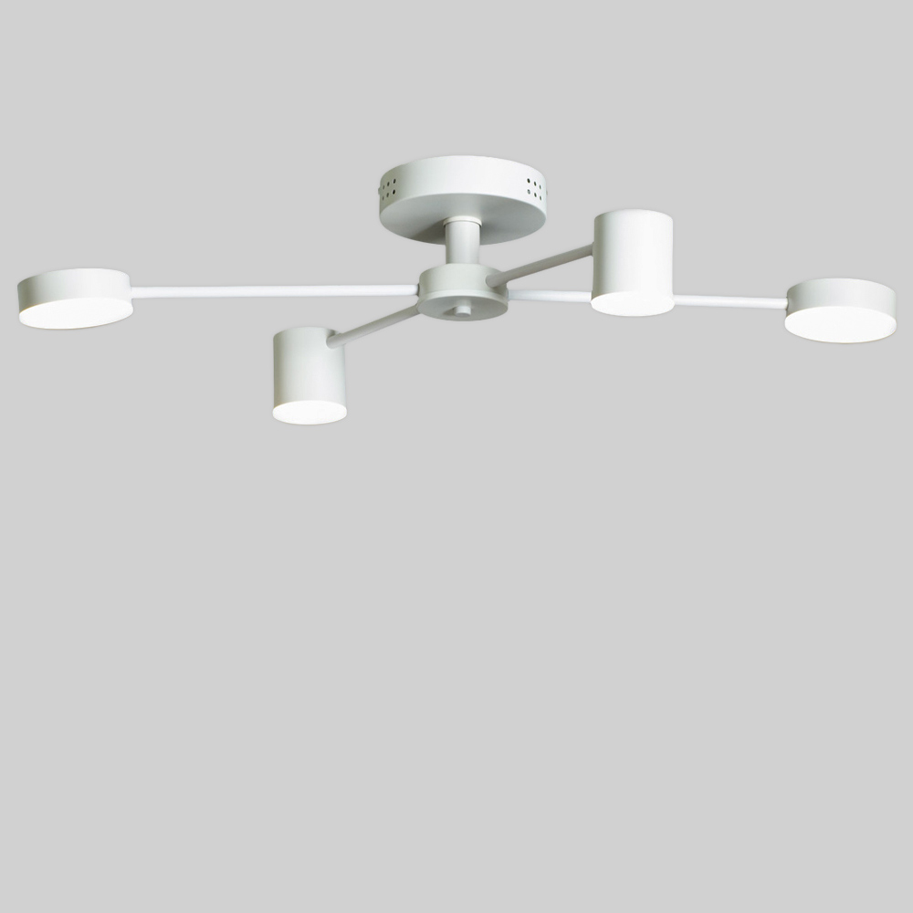 Стельова світлодіодна люстра в сучасному стилі, на чотири джерела світла (два плоских круглих, і два циліндричних) з пультом управління і функцією регулювання температури та яскравості свічення.