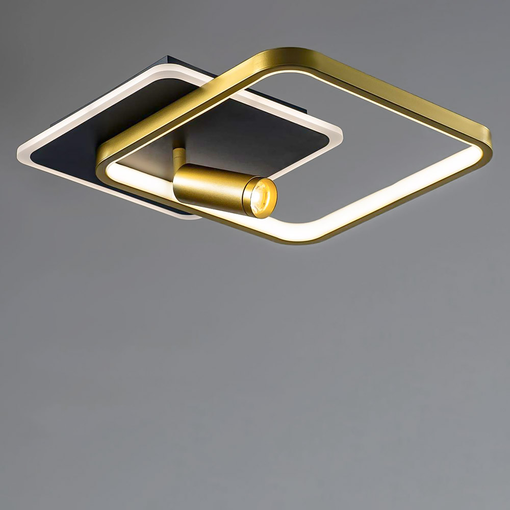 Сучасна стельова світлодіодна люстра з підсвічуванням корпусу, на два джерела світла у вигляді LED квадрата і поворотного світильника циліндричної форми.