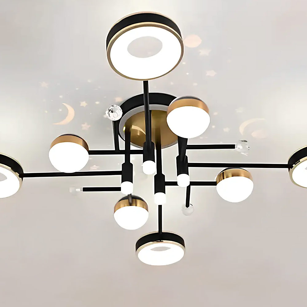 Стельова світлодіодна люстра в сучасному стилі із зоряною проекцією, на вісім основних та чотири додаткові джерела світла з регулюванням температури світіння та пультом управління.