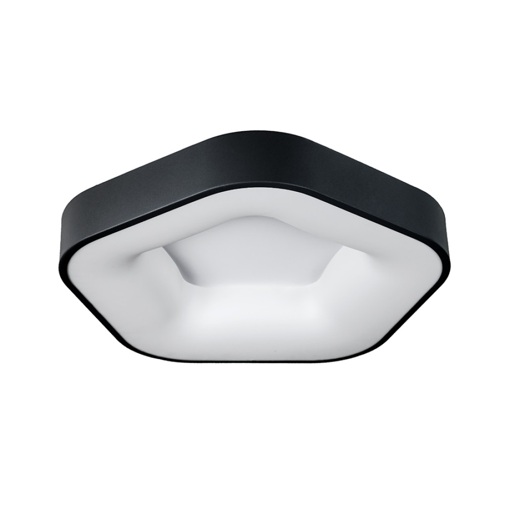 Стельова світлодіодна смарт люстра (світильник) у сучасному стилі, у вигляді п'ятикутника із закругленими кутами та гранями. Оснащена пультом управління з регулюванням колірної температури.