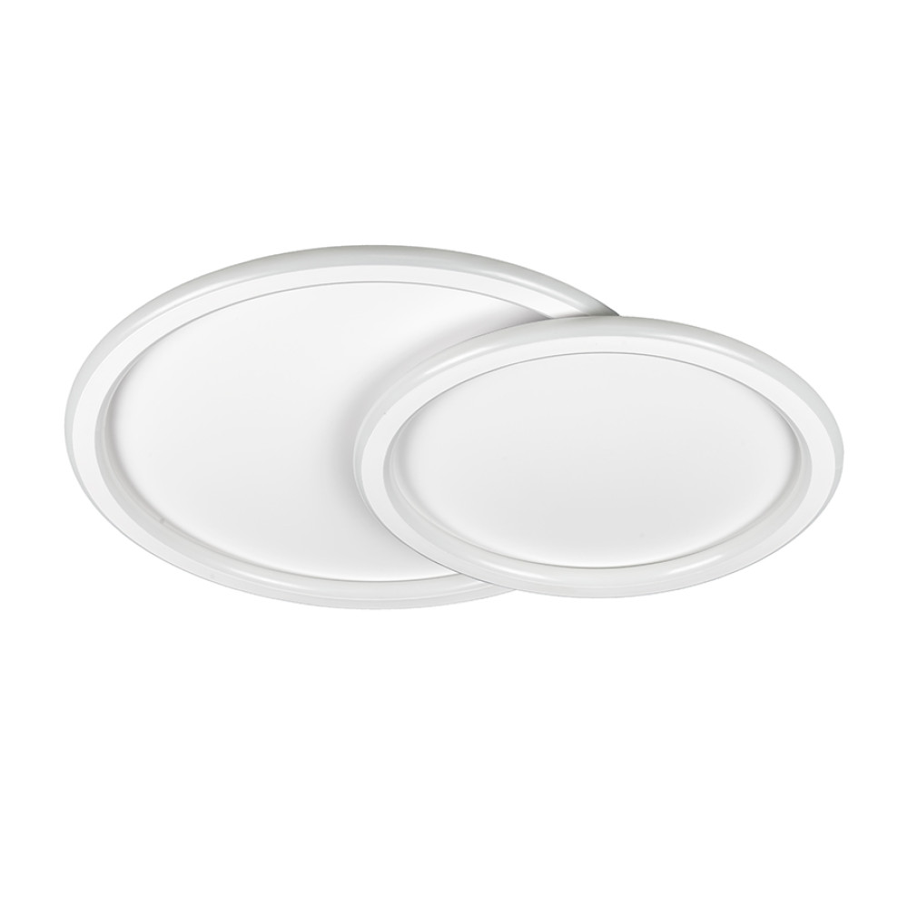 Стельова світлодіодна люстра у сучасному стилі, на два джерела світла овальої плоскої форми. Люстра оснащена функцією регулювання температури свічення.