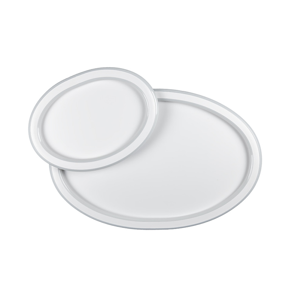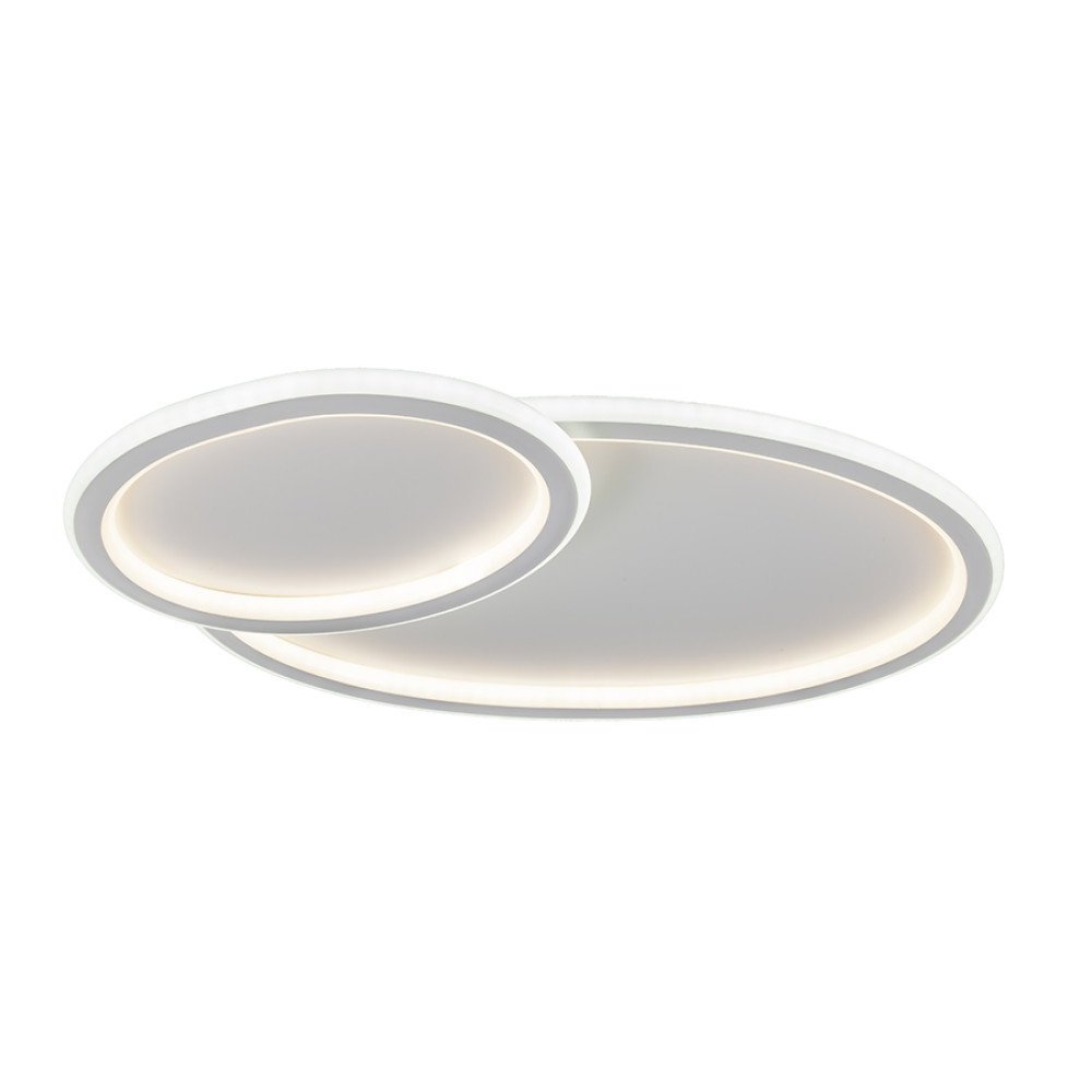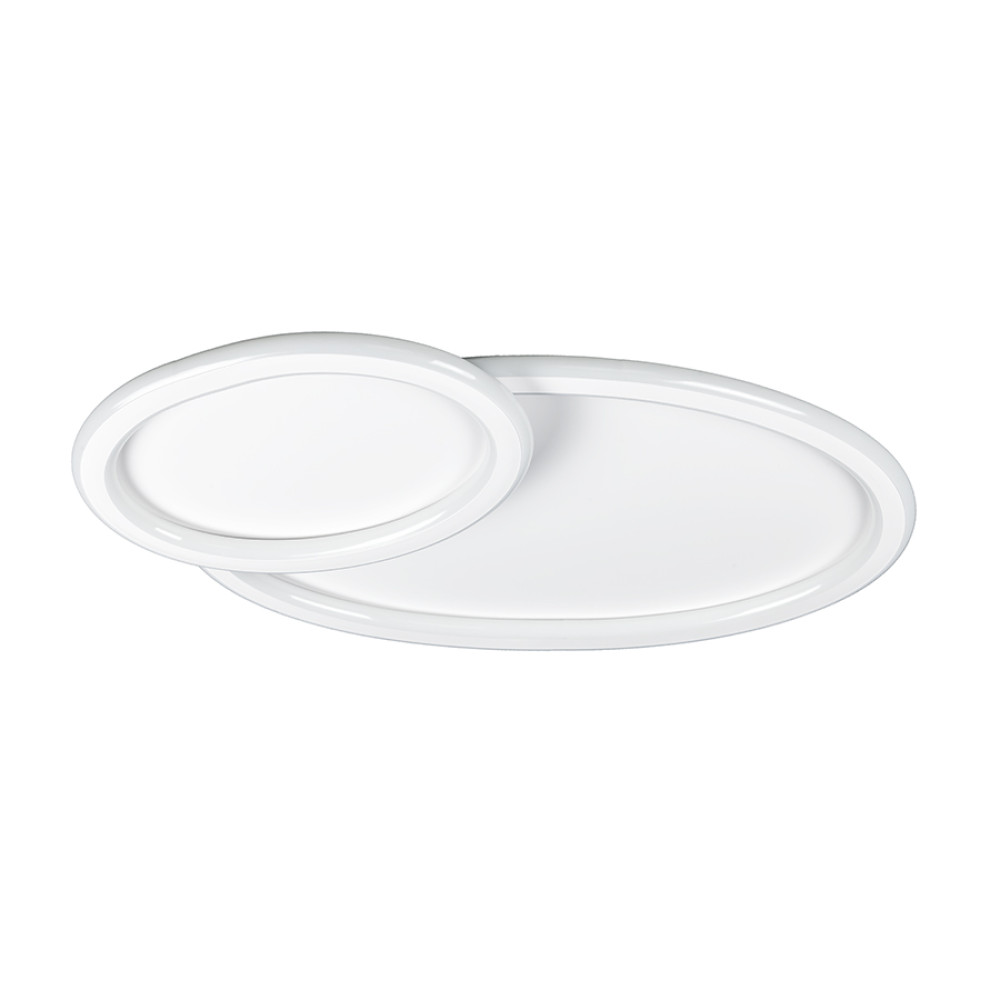 Стельова світлодіодна люстра у сучасному стилі, на два джерела світла овальної плоскої форми. Люстра оснащена функцією регулювання температури свічення.