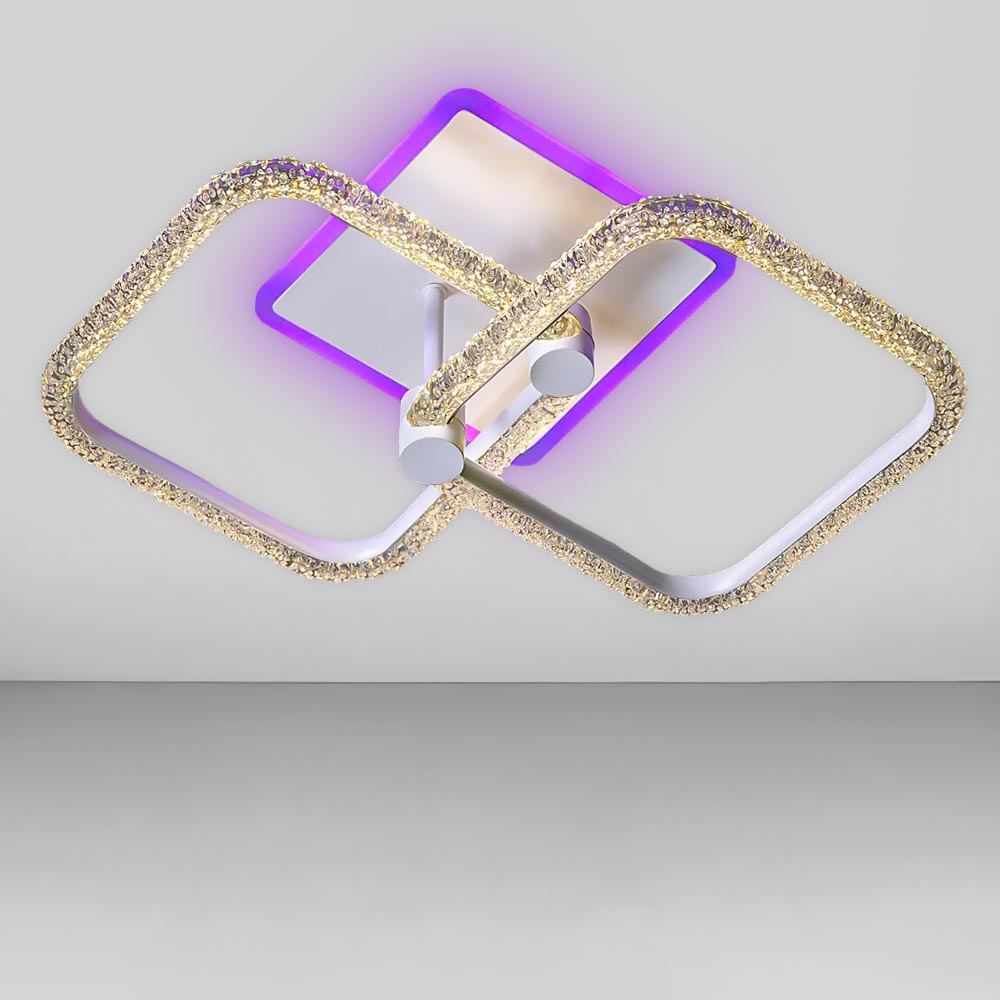 Стельова світлодіодна люстра в сучасному стилі, на два джерела світла у вигляді LED квадратів з підсвічуванням корпусу, регулювання температури свічення, без пульта керування.