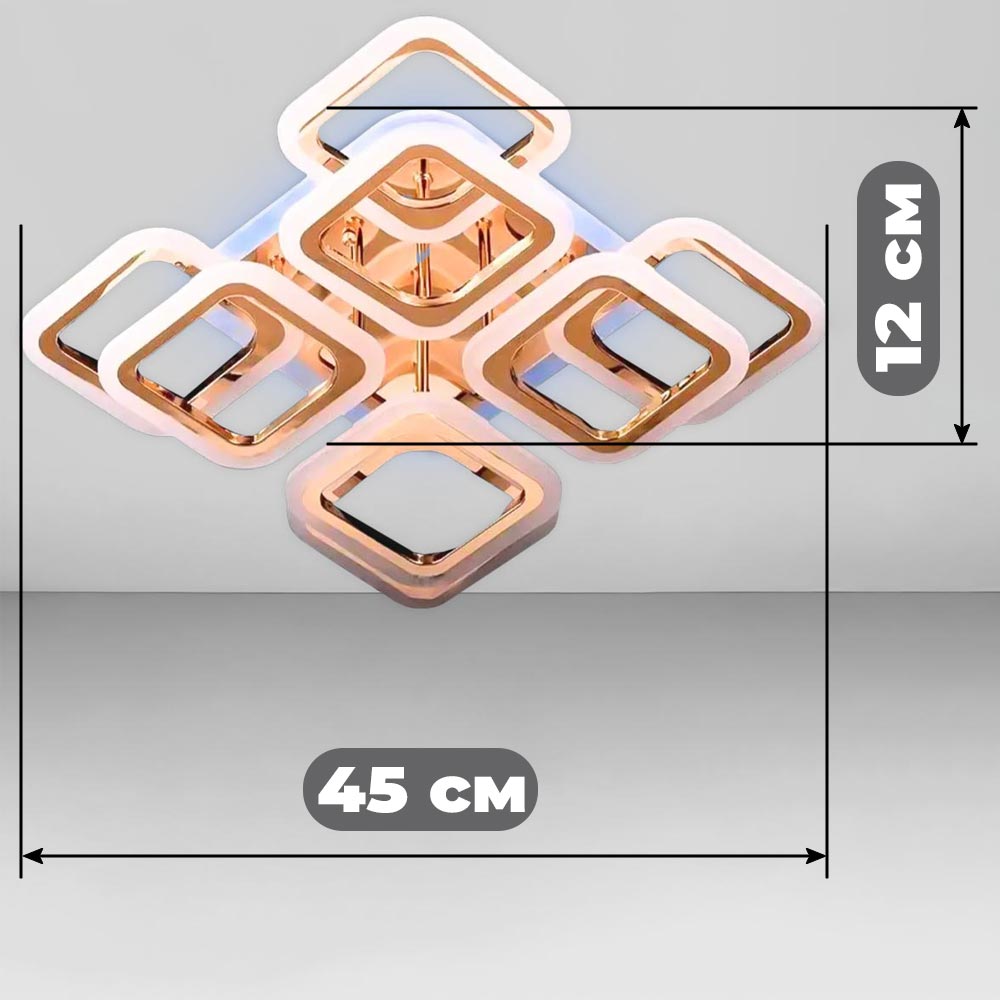 Люстра стельова світлодіодна Light House SL-18185/4+4C FG+RGB 144W DIMMER 3000-6000 H120*L450*W450, колір золото