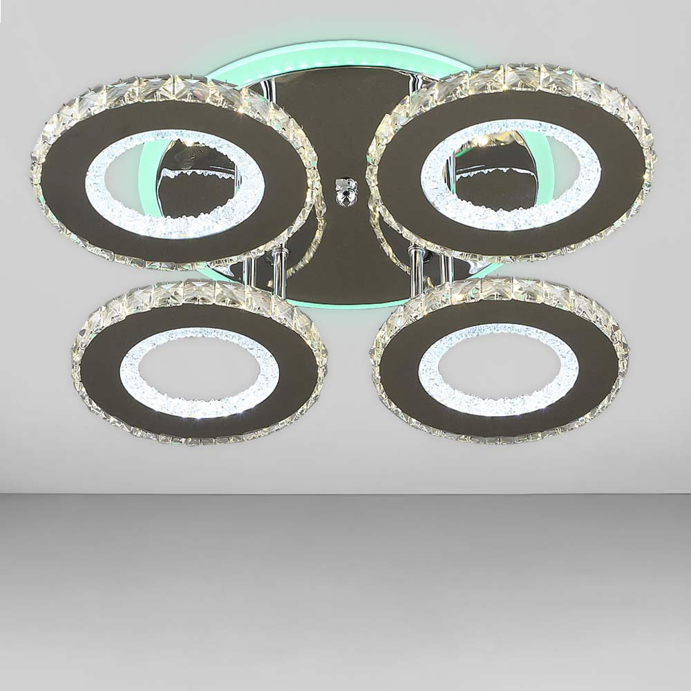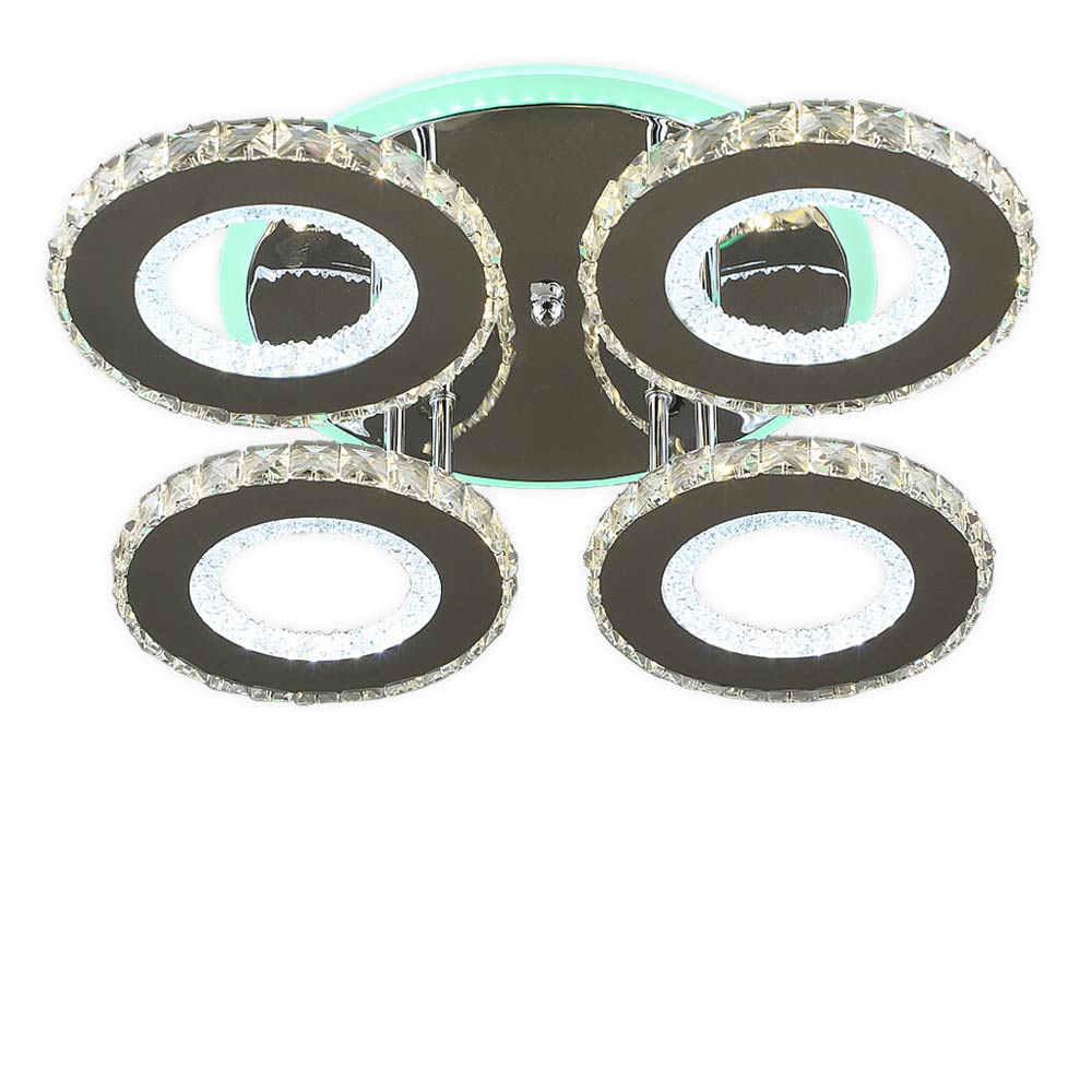 Стельова світлодіодна люстра в сучасному стилі, на чотири джерела світла у вигляді LED кілець з RGB підсвічуванням корпусу та пультом управління.