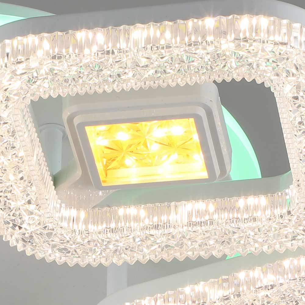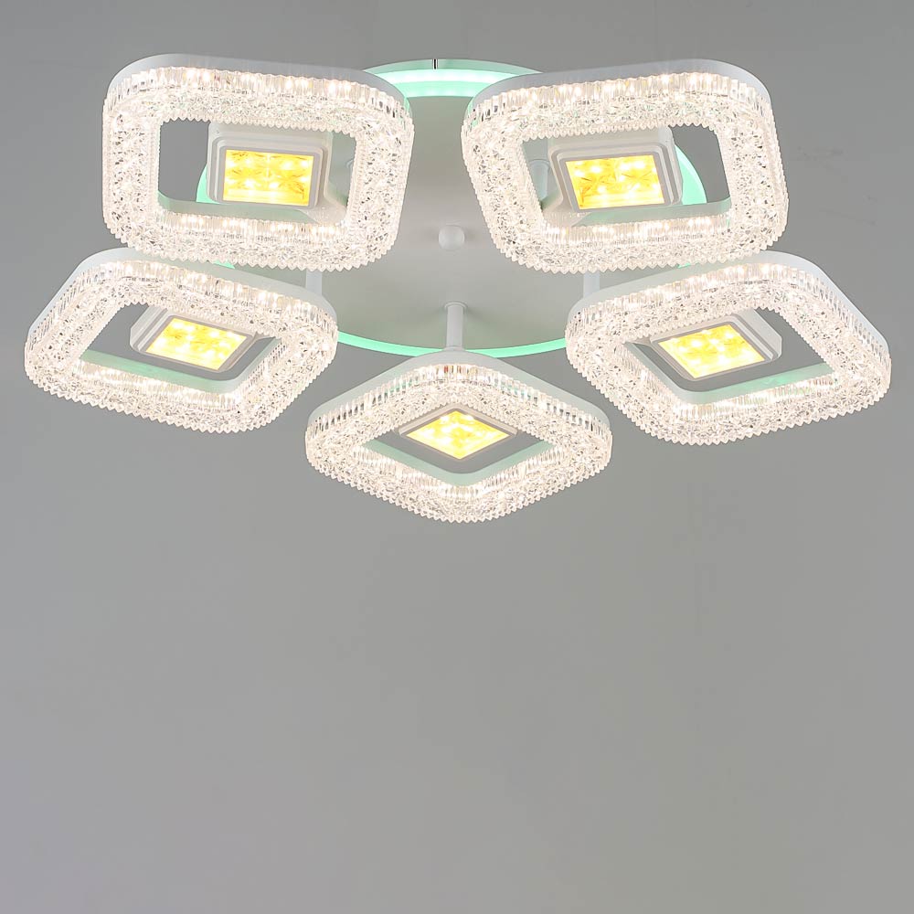 Стельова світлодіодна люстра в сучасному стилі, на п'ять джерел у вигляді LED квадратів з RGB підсвічуванням корпусу і пультом управління.