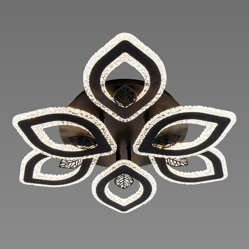 З діаметром 650 мм та висотою 120 мм, ця люстра робить великий акцент на своїй присутності у приміщенні. За допомогою шести плафонів з акрилу, що мають форму квітки, вона створює враження ніби квітучого ботанічного дива, пронизаного світлом.