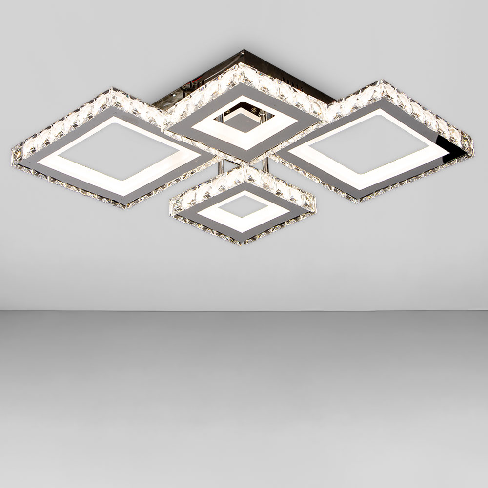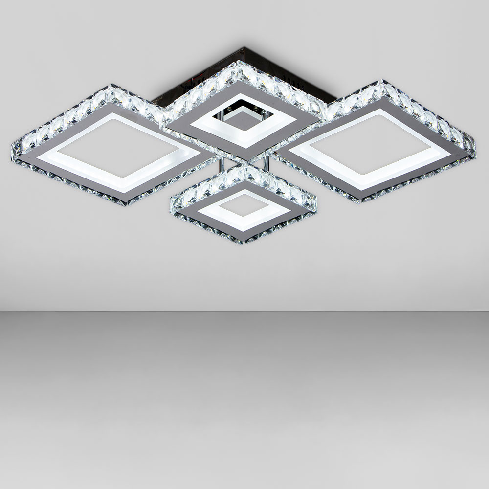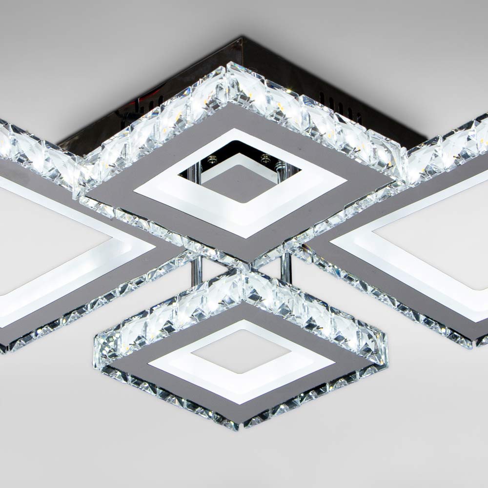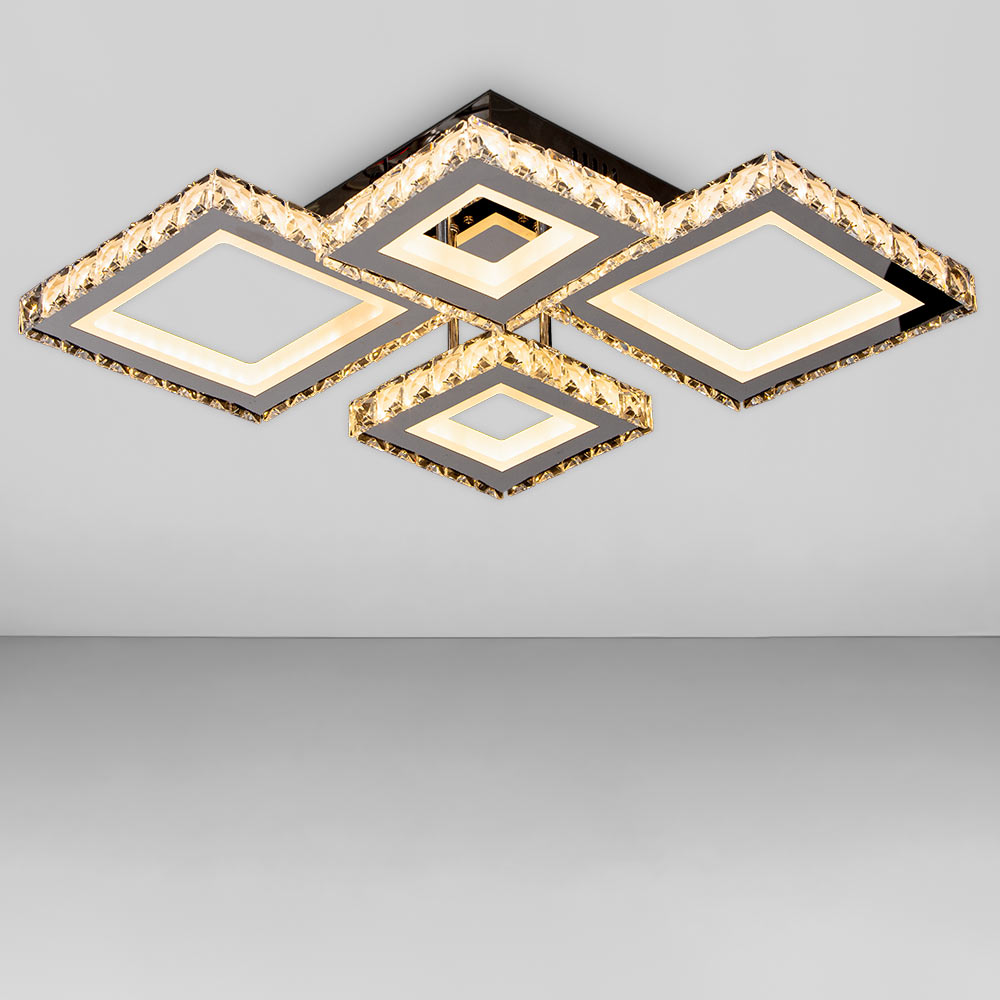 Стельова світлодіодна люстра в сучасному стилі, на чотири джерела світла у вигляді LED квадратів з диммером і пультом управління.
