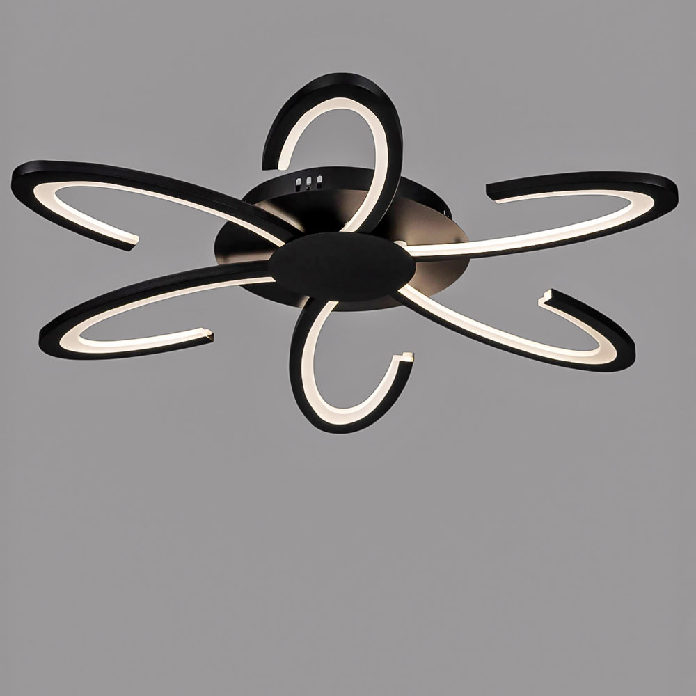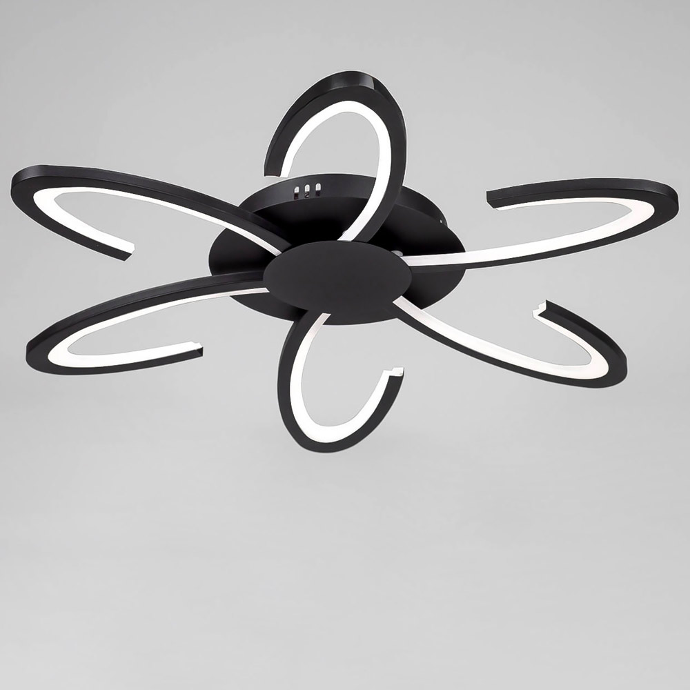 Сучасна стельова LED люстра на шість джерел світла з вбудованими світлодіодами, оснащена пультом керування з функцією регулювання колірної температури. Незвичайний дизайн люстри включає в себе конструкцію із шести плафонів у вигляді неповних овалів на круглому корпусі. Найкраще ця люстра підійде для освітлення 30 м² приміщення, відмінно підходить для невисоких стель.