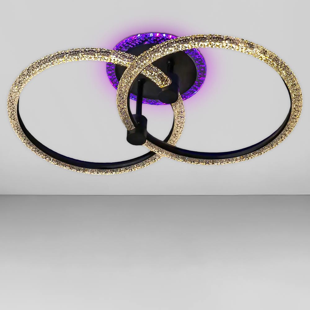 Стельова світлодіодна люстра в сучасному стилі, на два джерела світла у вигляді LED кілець з підсвічуванням корпусу та регулювання температури свічення, без пульта.