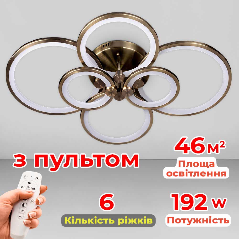 Люстра стельова світлодіодна LED Light House SL-18184/2+2+2 AB 192W DIMMER 3000-6000 H130*L780*W570, колір бронза