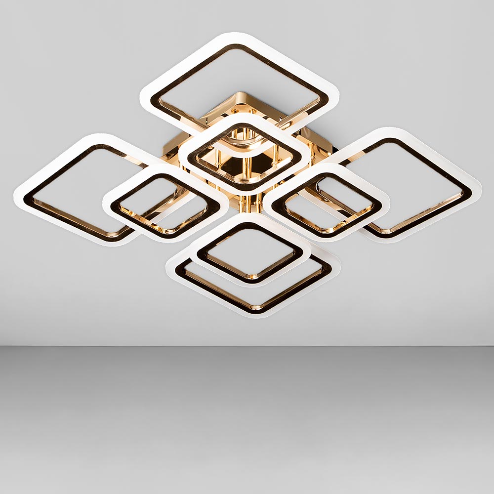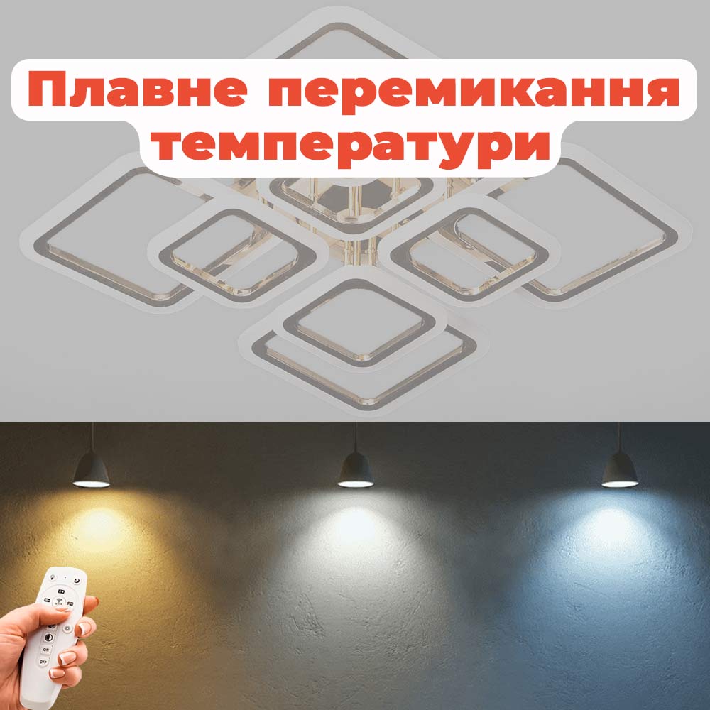Стельова світлодіодна люстра у сучасному стилі, на вісім джерел світла у вигляді LED квадратів з димером.